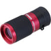 The aluminum housing has a red anodized finish for corrosion and scratch resistance, with a ribbed rubber focus collar for easy handling and a fold-down rubber eyecup to make the monocular comfortable to use with or without eyewear. The Artscope is made in Japan, and comes with a case and carrying strap. Pair the monocular with Vixen's separately sold Multi Monocular Microscope Stand to use it as a magnifier.