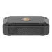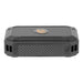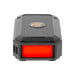 Slightly smaller than a building brick and weighing only 1.4 pounds, the rugged rubber covering protects the battery from minor impacts and seals the red LED flashlight on/off switch from dirt and moisture. The five level indicator shows power availability. The unit is turned on or off with a toggle switch. A convenient 2-point attachment point allows you to hang the battery near your equipment.